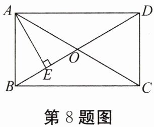 8. 如图,在矩形$ABCD$中,对角线$AC与BD相交于点O$,$AE⊥BD$,垂足为点$E$,$AE= 8$,$AC= 20$,则$OE$的长为()