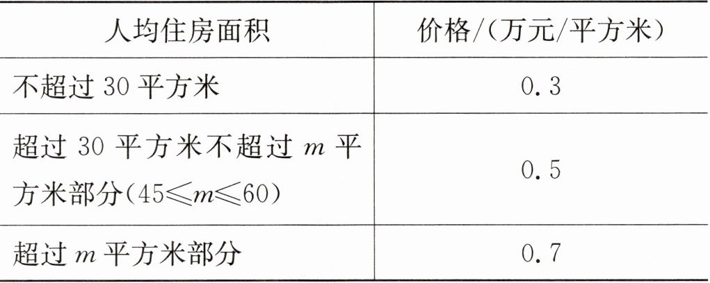 (3)若该家庭购买商品房的人均面积为 50 平方米,缴纳房款为 $ y $ 万元,且 $ 57 < y \leq 60 $,求 $ m $ 的取值范围.