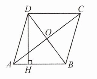 10. 如图,菱形 $ A B C D $ 的对角线 $ A C, B D $ 交于点 $ O $,且 $ A C = 16 \mathrm { cm }, B D = 12 \mathrm { cm } $,求菱形 $ A B C D $ 的高 $ D H $.