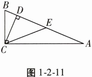 18. 如图 1 - 2 - 11,在$\triangle ABC$中,$∠ACB = 90^{\circ}$,$CD⊥AB$,垂足为$D$,点$E是AB$的中点,若$CD = DE = 2$,求$AB$的长。