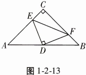20. 如图 1 - 2 - 13,在$Rt\triangle ABC$中,$∠C = 90^{\circ}$,$D是AB$的中点,$E$,$F分别在AC和BC$上,且$DE⊥DF$。求证:$EF^{2}= AE^{2}+BF^{2}$。