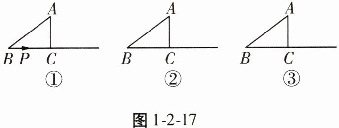 24. 如图 1 - 2 - 17,在$Rt\triangle ABC$中,$∠ACB = 90^{\circ}$,$AB = 5cm$,$AC = 3cm$,动点$P从点B出发沿射线BC$以 1 cm/s 的速度移动,设运动的时间为$t$ s。