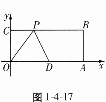 16. 如图1-4-17,在平面直角坐标系中,O为坐标原点,四边形OABC是矩形,点A,C的坐标分别为A(10,0),C(0,4),点D是OA的中点,点P为线段BC上的点。小明同学写出了一个以OD为腰的等腰三角形ODP的顶点P的坐标(3,4),请你写出其余所有符合这个条件的P点坐标______。