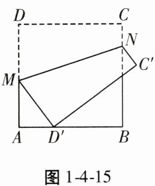 14. 如图1-4-15,将正方形纸片ABCD沿MN折叠,使点D落在边AB上,对应点为D',点C落在C'处。若AB= 6,AD'= 2,则折痕MN的长为______。
