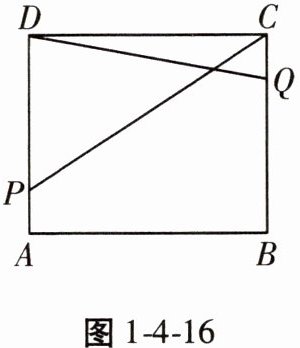 15. 如图1-4-16,在矩形ABCD中,AB= 6,AD= 5,点P在AD上,点Q在BC上,且AP= CQ,连接CP,QD,则PC+DQ的最小值为______。