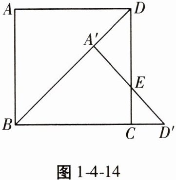 13. 如图1-4-14,在正方形ABCD中,AD= 1,将△ABD绕点B顺时针旋转45°得到△A'BD',此时A'D'与CD交于点E,则DE= ______。
