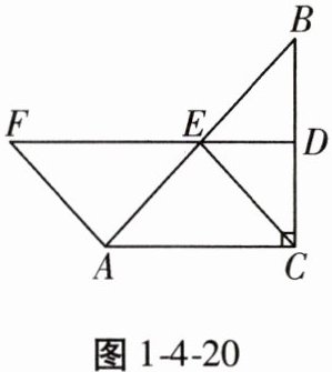 19. 如图1-4-20,在△ABC中,∠ACB= 90°,BC的垂直平分线DE交BC于点D,交AB于点E,点F在DE的延长线上,且AF= CE。