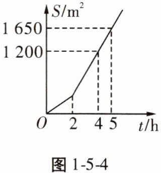 10. 明君社区有一块空地需要绿化,某绿化组承担了此项任务,绿化组工作一段时间后,提高了工作效率。该绿化组完成的绿化面积$S(m^2)与工作时间t(h)$之间的函数关系如图1-5-4所示,则该绿化组提高工作效率前每小时完成的绿化面积是()