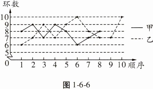 (1)将甲运动员射击训练成绩的折线统计图(如图1-6-6)补充完整;
