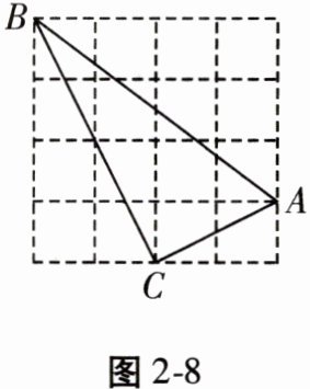 19. (6分)如图2-8,在正方形网格中,每个小正方形的边长均为1,点A,B,C均在格点上。