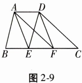 20. (8分)如图2-9,在梯形ABCD中,AD//BC,AB//DE,AF//DC,E,F两点在边BC上,且四边形AEFD是平行四边形。