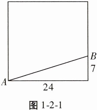 3. 如图 1 - 2 - 1,有一块边长为 24 m 的正方形绿地,在绿地旁边$B$处有健身器材,由于居住在$A处的居民去B$处健身时践踏了绿地,小明想在$A$处立一个标牌“少走$\square$m,踏之何忍”,请你计算后帮小明在标牌“$\square$”处填上适当数字是()
