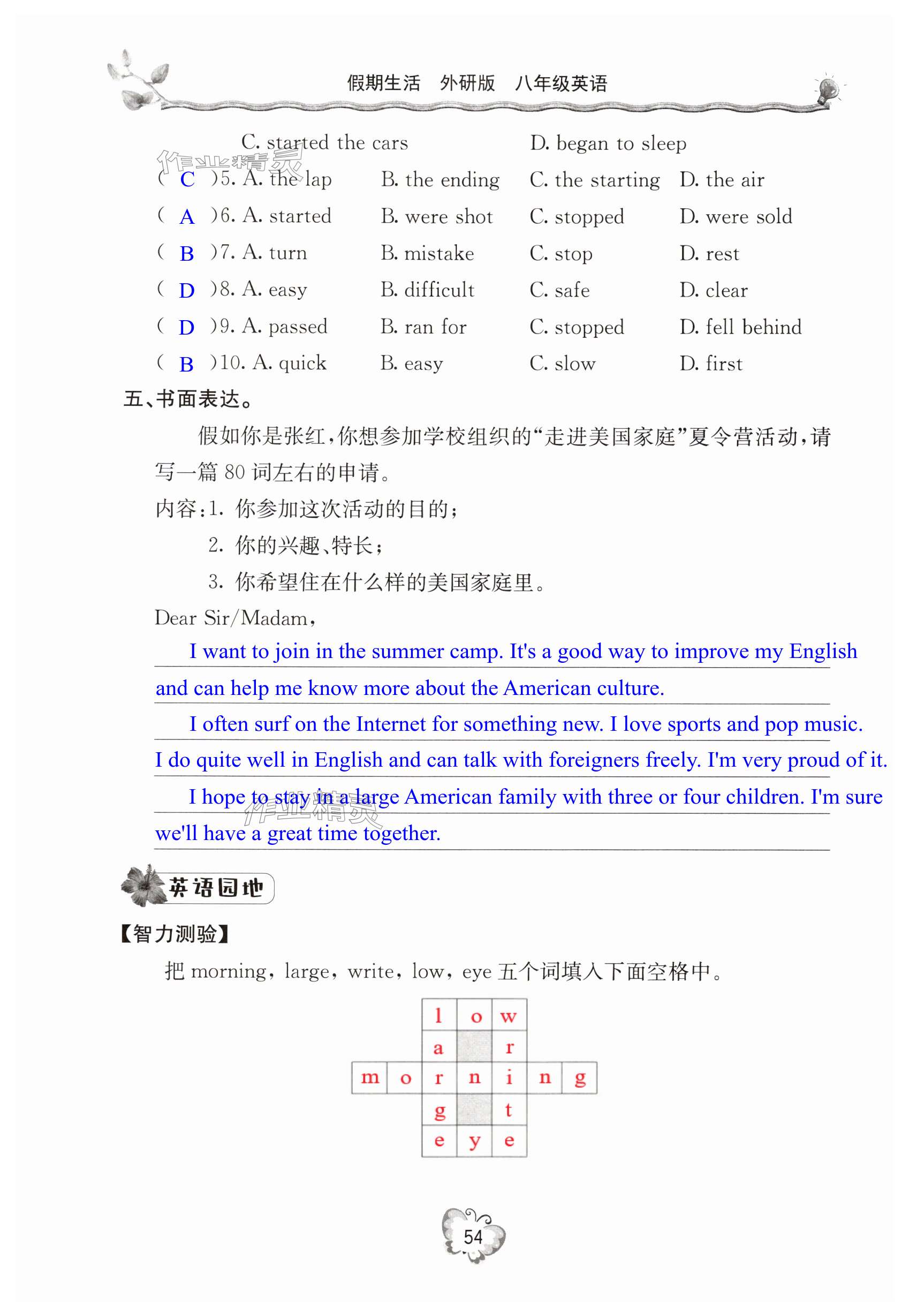 注:目前有些书本章节名称可能整理的还不是很完善,但都是按照顺序排列的,请同学们按照顺序仔细查找。练习册 2025年新课堂假期生活八年级英语外研版北京教育出版社 答案主要是用来给同学们做完题方便对答案用的,请勿直接抄袭。