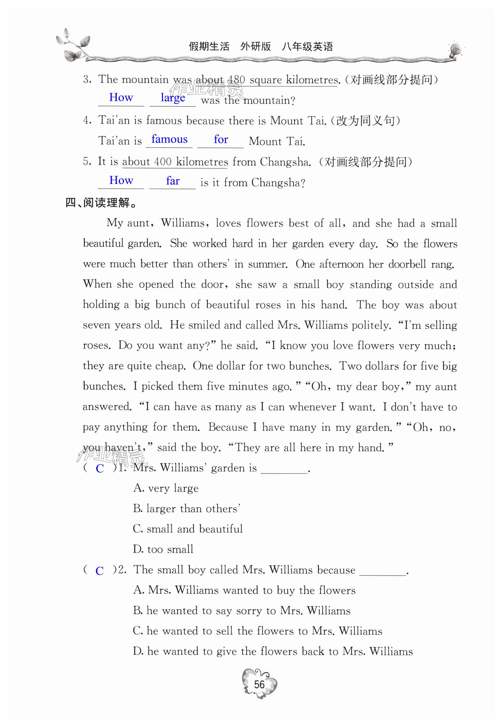 注:目前有些书本章节名称可能整理的还不是很完善,但都是按照顺序排列的,请同学们按照顺序仔细查找。练习册 2025年新课堂假期生活八年级英语外研版北京教育出版社 答案主要是用来给同学们做完题方便对答案用的,请勿直接抄袭。