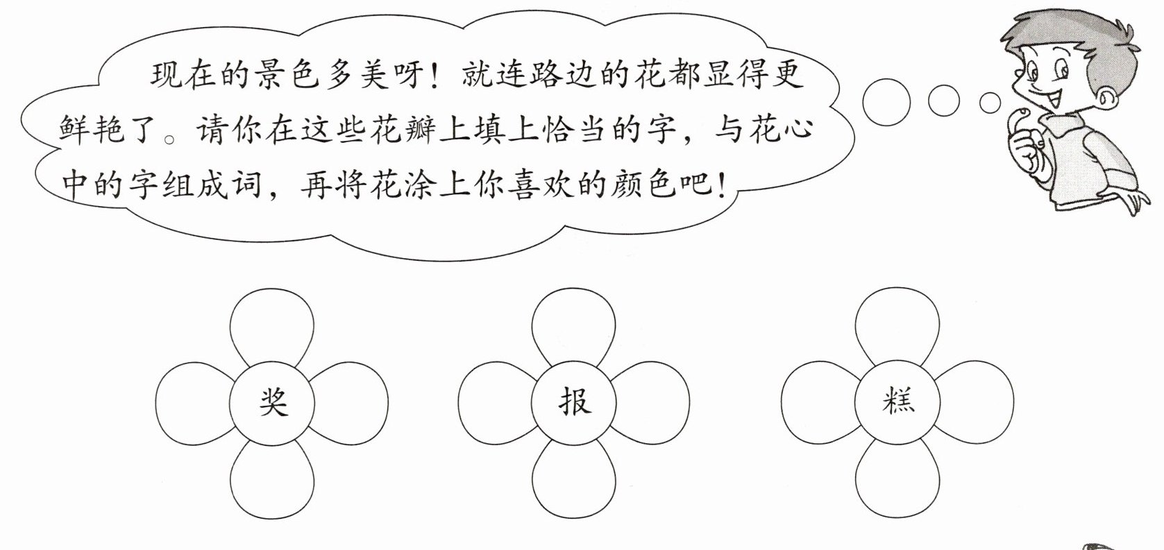 二、组词语,看哪朵花最漂亮!