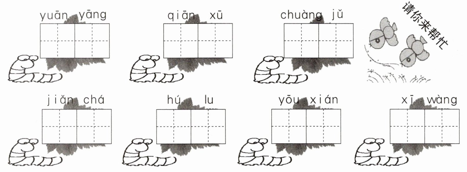两只小鸟长大了,要去学习捉虫子。狡猾的虫子藏在树叶下面,只有读准音写对词,才能捉到虫子。小鸟能行吗?