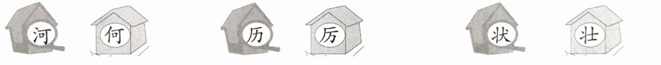 小海鸥去当邮递员,送信时总是分不清门牌上的字,你能帮它区分一下吗?为了让它记牢,再分别给这些字组个词吧。