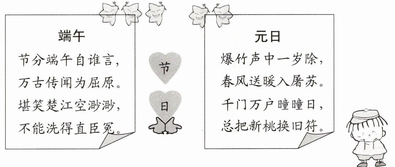 深厚的传统文化是中国人的根,我们一起来读一读下面这两首诗,交流一下节日的风俗习惯吧。