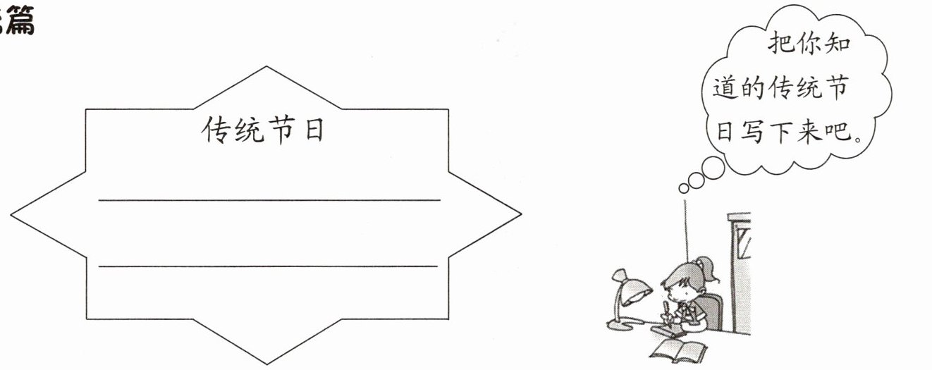 【解析】:本题主要考查对传统节日的了解和书写能力。通过日常积累或查阅资料,写出知道的传统节日名称。