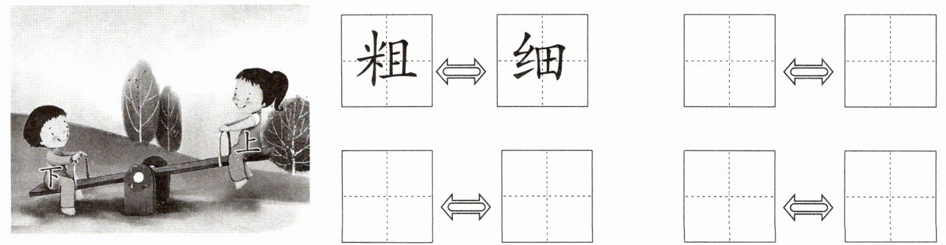 跷跷板的两头总是一上一下,生活中也有很多这样的词,开动脑筋想一想,写一写吧!