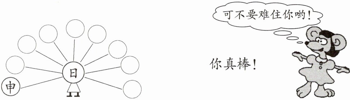 给“日”字加一笔变成新字,并写下来。涂涂颜色,让孔雀漂亮起来。