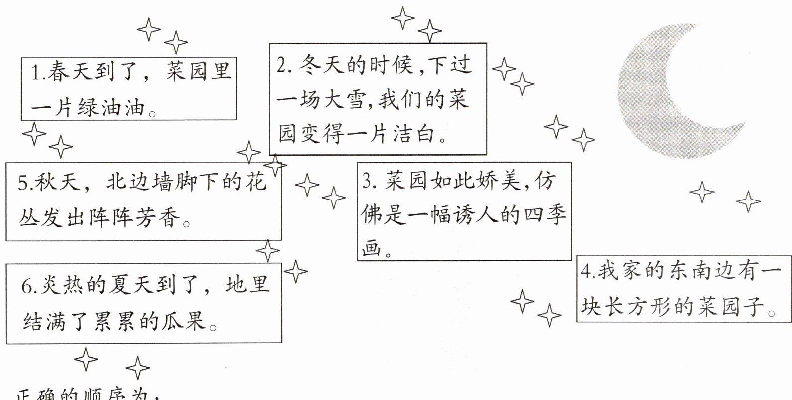 调皮的小星星把句子的顺序弄乱了,让我们来帮忙吧!(只写序号)