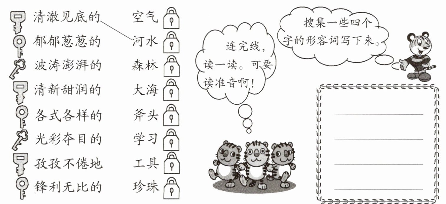 小虎兄弟很粗心,它们不知手中的钥匙能开哪把锁,你来帮它们开开看!