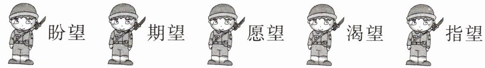 同训练 打靶训练场上,战士们苦练杀敌本领,你追我赶,分毫不让,比比谁的枪法准,选词填空。