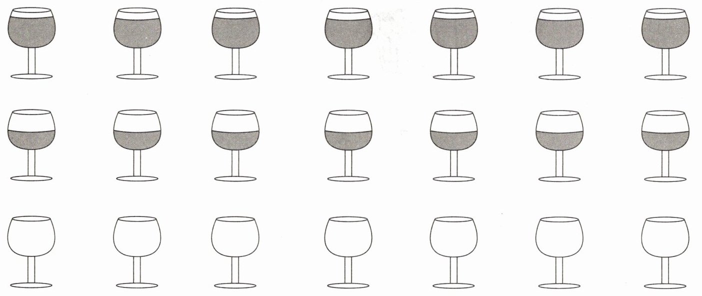 贝贝的妈妈准备了7个满杯的红酒、7个半杯的红酒和7个空杯,现在要平均分给3个客人,该怎么分呢?