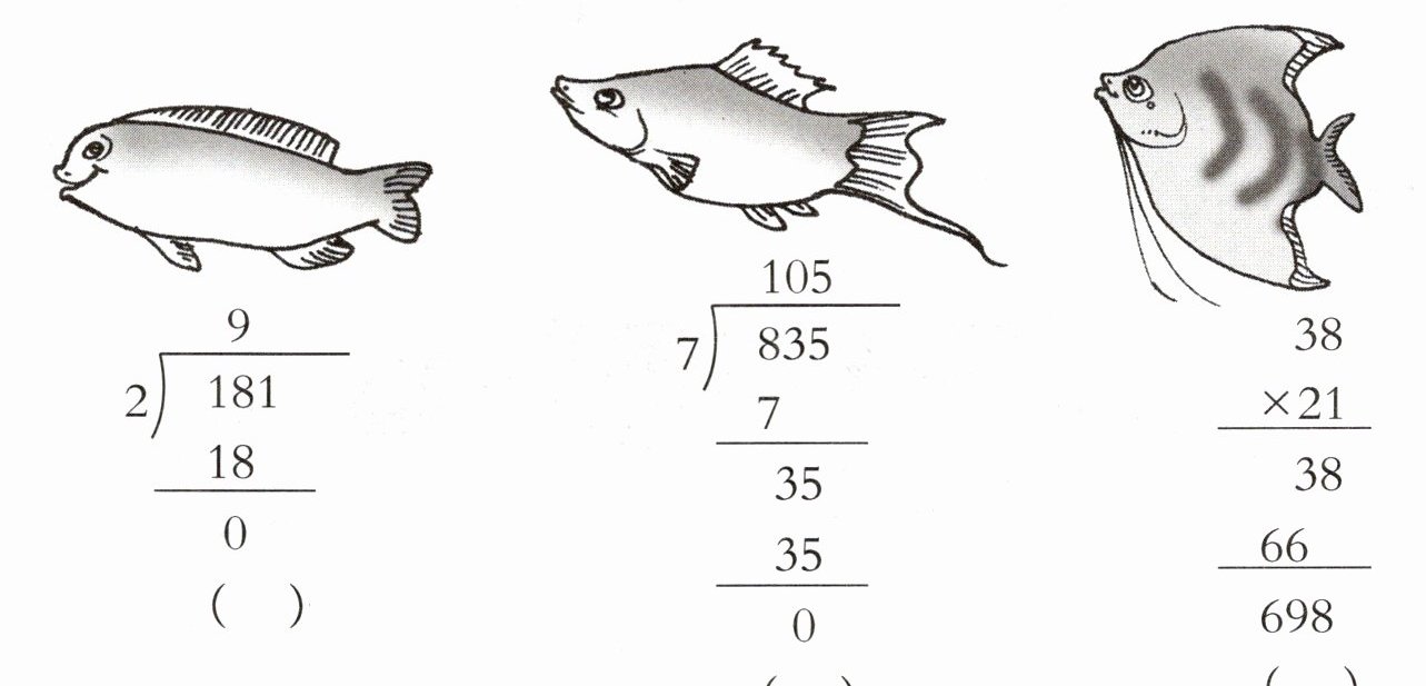 计算过程为:先用$8÷7 = 1\cdots\cdots1$,把$3$落下来是$13$,$13÷7 = 1\cdots\cdots6$,再把$5$落下来是$65$,$65÷7 = 9\cdots\cdots2$,这里发现原竖式商的位置错误,正确的商应该是$119$,$119×7 = 833$,$835 - 833 = 2$。