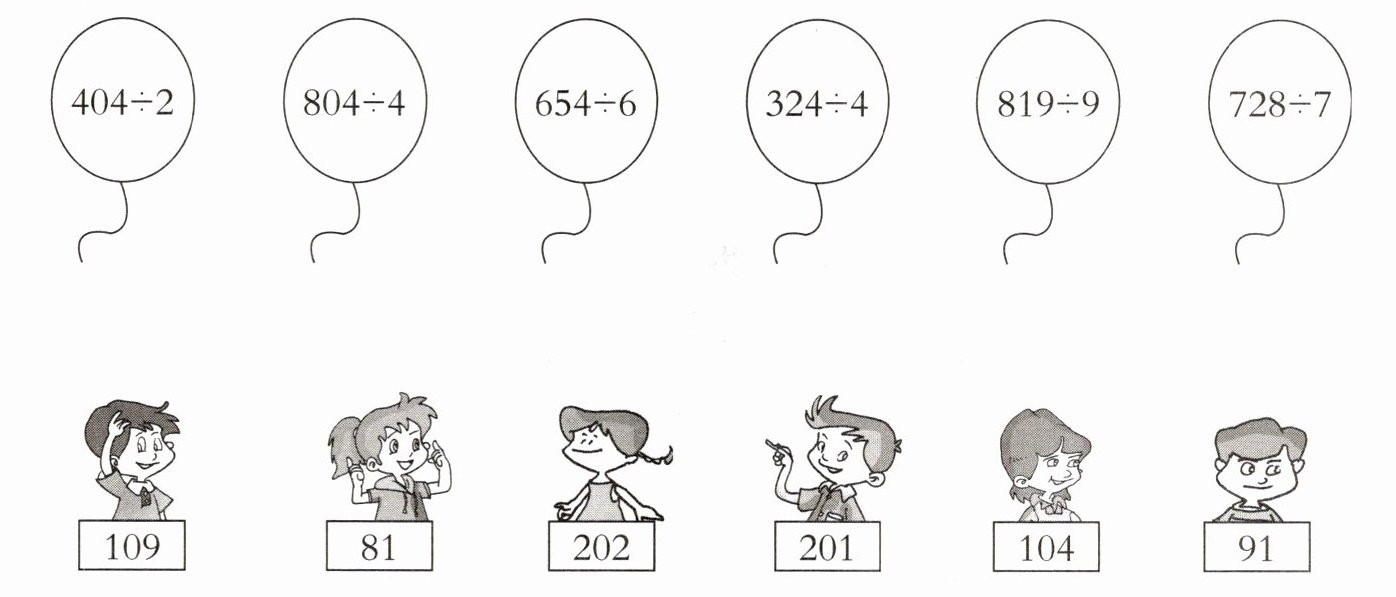 在书店门口,小朋友们放飞了自己手中的气球,请你帮他们找一找自己的气球,然后连一连。