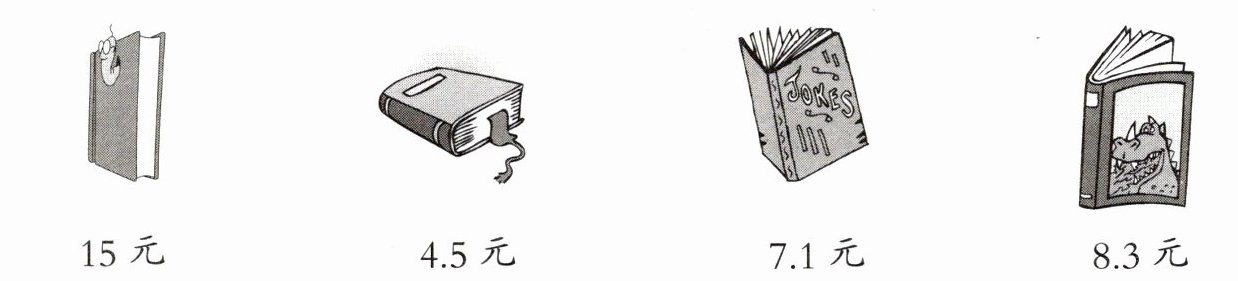 这几本书的价钱分别为$15$元、$4.5$元、$7.1$元、$8.3$元。