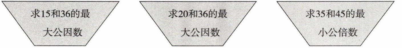 答案:$15$和$36$的最大公因数是$3$;$20$和$36$的最大公因数是$4$;$35$和$45$的最小公倍数是$315$。