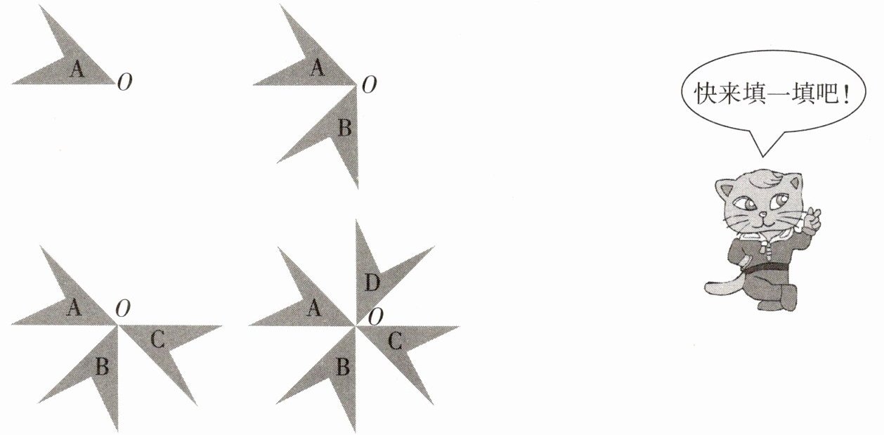 1.这儿有一个漂亮的由四个心形图案组成的图形,你知道这个漂亮的图形是怎么得到的吗?快来填一填吧!
