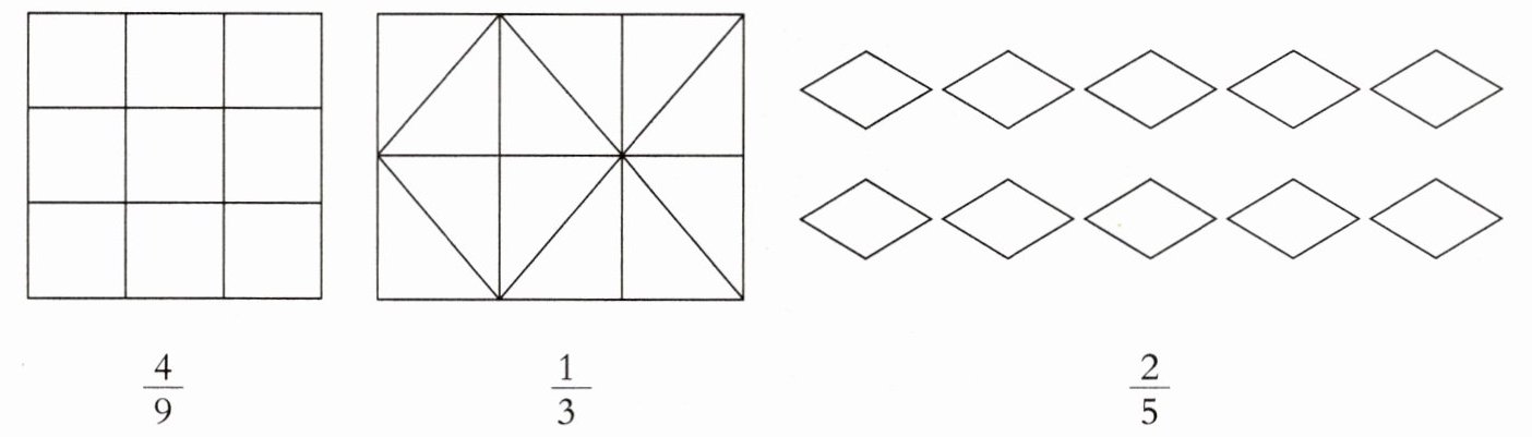 分析:该图形一共有$10$个菱形,要表示$\frac{2}{5}$,根据分数的意义,$\frac{2}{5}$表示把单位“$1$”($10$个菱形)平均分成$5$份,取其中的$2$份。$10÷5 = 2$,即$1$份是$2$个菱形,$2$份就是$2×2 = 4$个菱形。