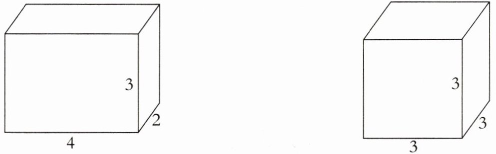 7. 下面是小明画的两个立体图形,你能求出它们各自的体积和表面积分别是多少吗?