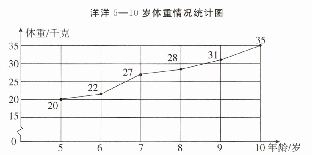 (1)随着年龄的增长,洋洋的体重是怎样变化的?从5岁到10岁,她的体重一共增加了多少千克?