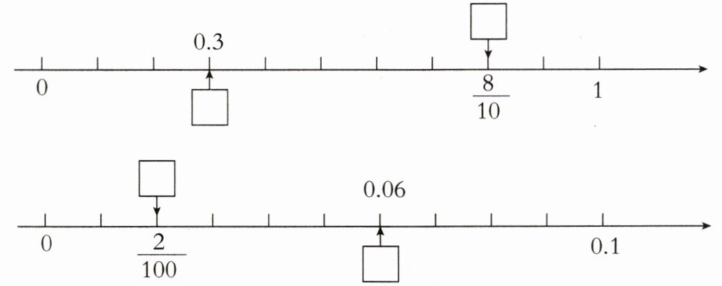 下排从左到右:$0.02$;$\frac{6}{100}$。