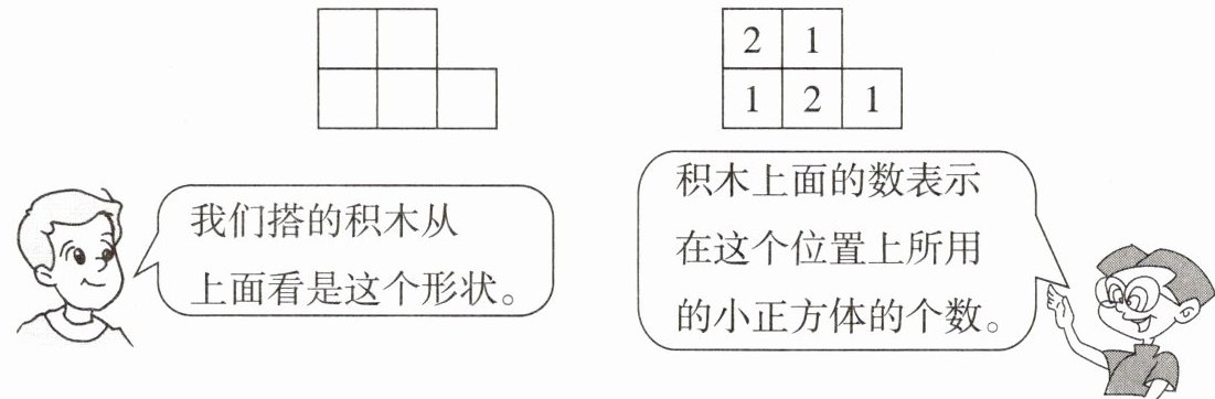 搭的这组积木,从正面看到的是( ),从左面看到的是( )。