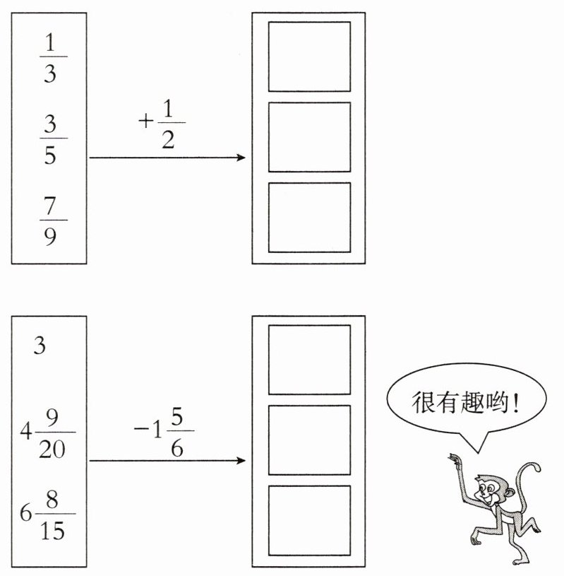 4. 小猴子也有精彩的节目要表演,瞧,它为大家出了两个题目,你能完成它吗?