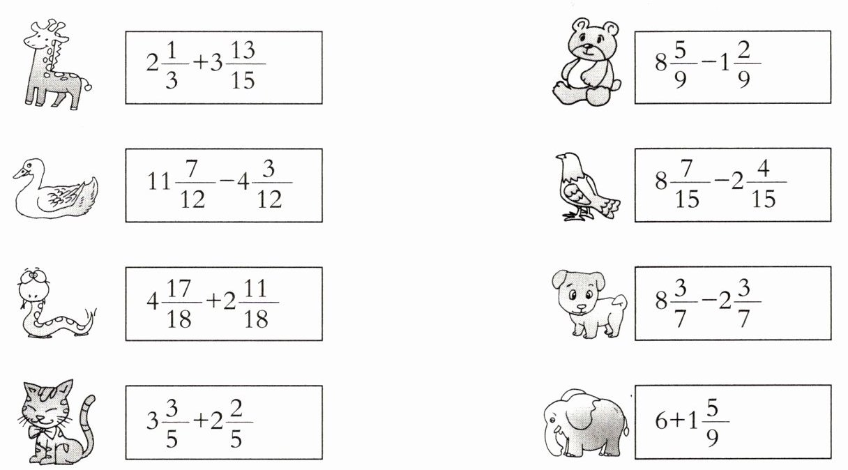 3. 下面要进行另一个节目了,小动物找朋友,你想让哪两个小动物做朋友呢?连连看。