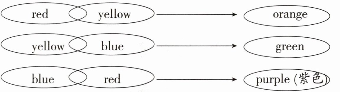 【解析】:本题主要考查颜色的混合知识,属于常识类题目。通过给出的颜色混合示例,要求了解不同颜色混合后产生的新颜色,并按照要求进行作答。