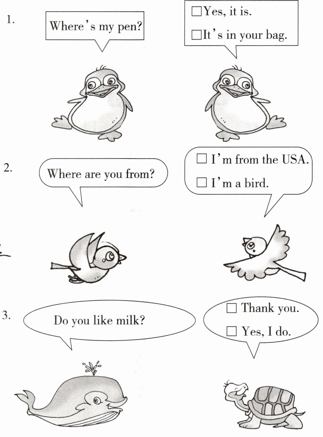 Ⅴ.请你根据对话选句子,在正确的句子前打“√”。
