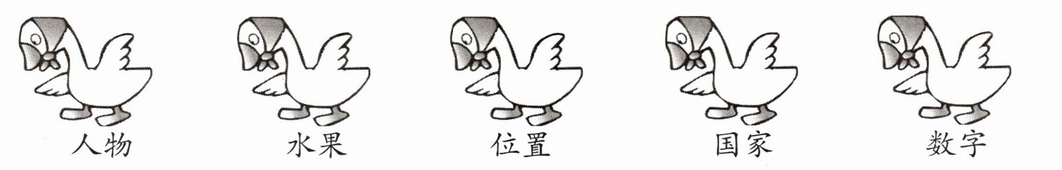 人物:2 5 16 18 水果:7 8 13 14 位置:4 12 15 国家:3 6 10 数字:1 9 11 17