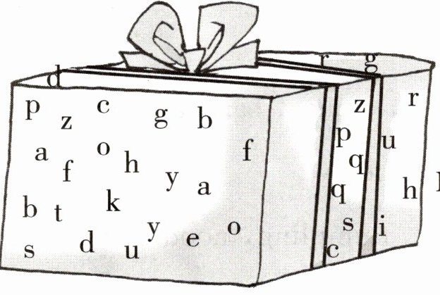 小朋友,你在智力游乐园表现得很棒,右边的盒子里给你准备了一个礼物,划掉出现过两次的字母,你就会知道是什么了。