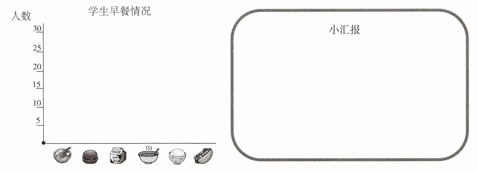 2. 根据调查表,完成班内早餐情况统计图并写个小汇报。