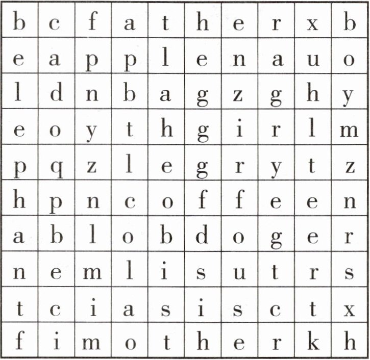 Ⅲ. 在字母墙上找到下面的单词吧!
