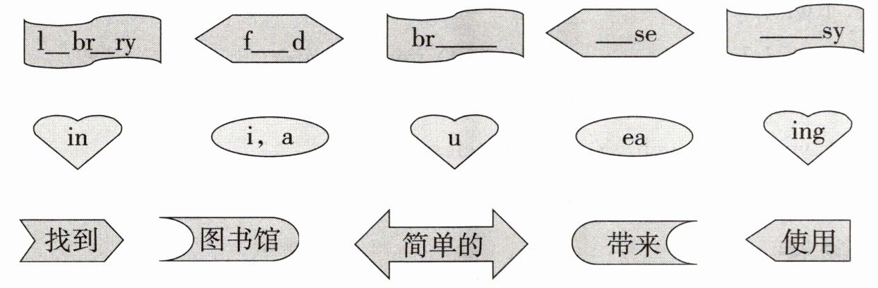 1.library,图书馆 2.find,找到 3.bring,带来 4.use,使用 5.easy,简单的