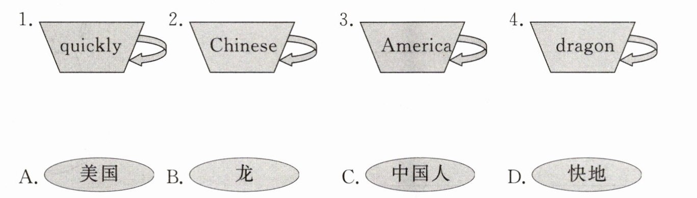 1. “quickly”常见释义为“快地”,与选项D匹配。