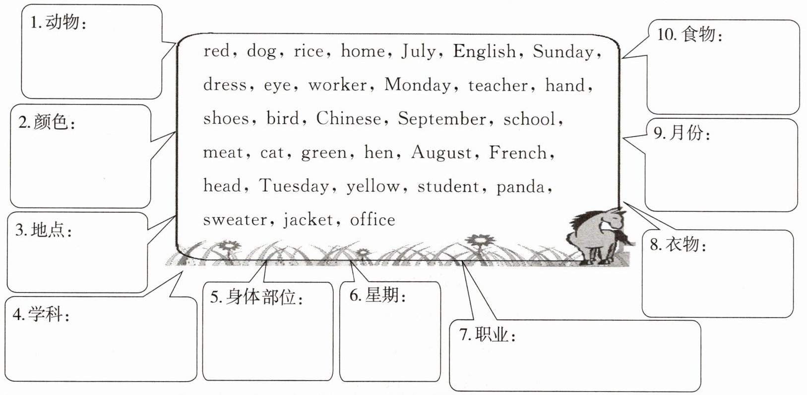 Ⅱ.Read and write.读一读,选出合适的单词写在横线上。